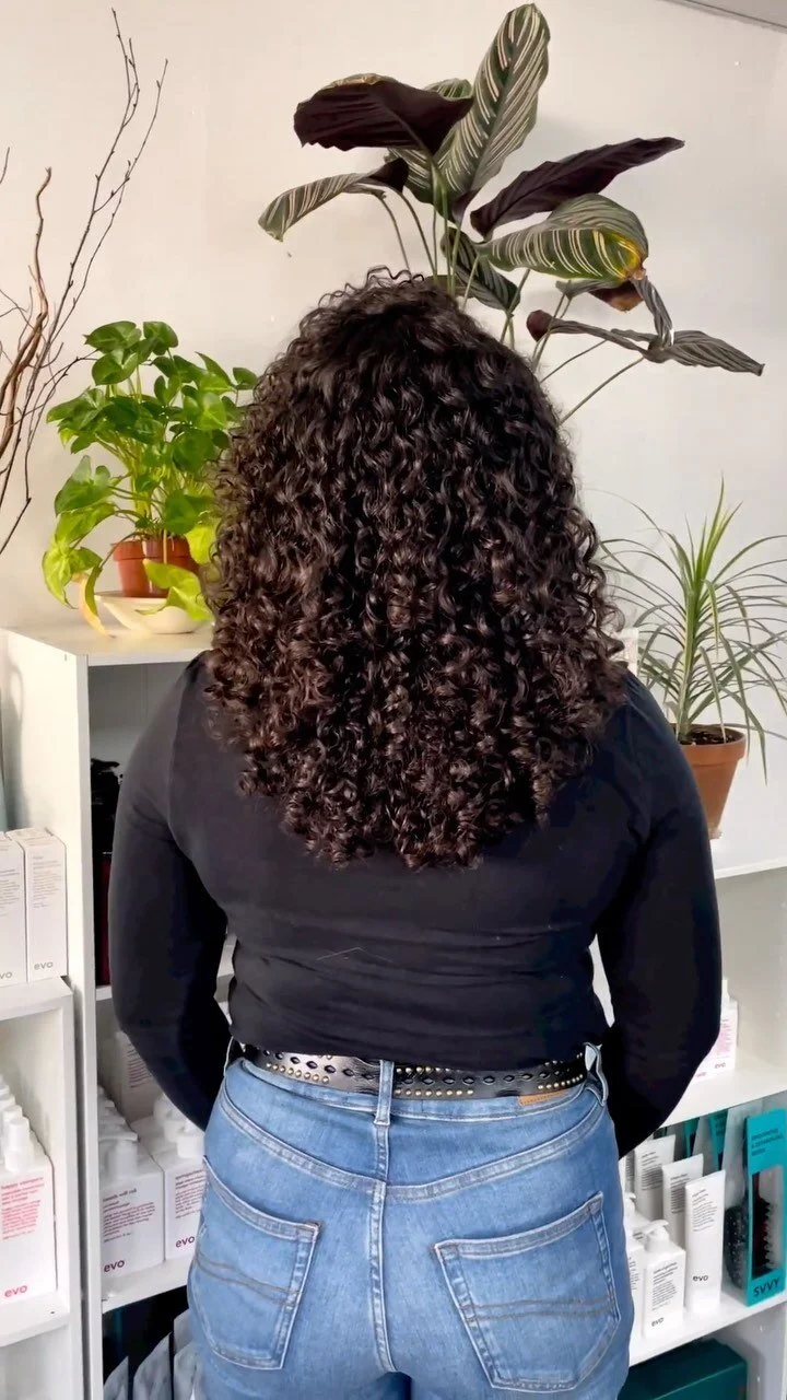 If your appointment consists of CURL mapping; this is where we take the hair and look at the directions in which the curl kinks or waves fall. We will discuss suitable shapes Face & for your vibe and your curl colour/cutting process begins.